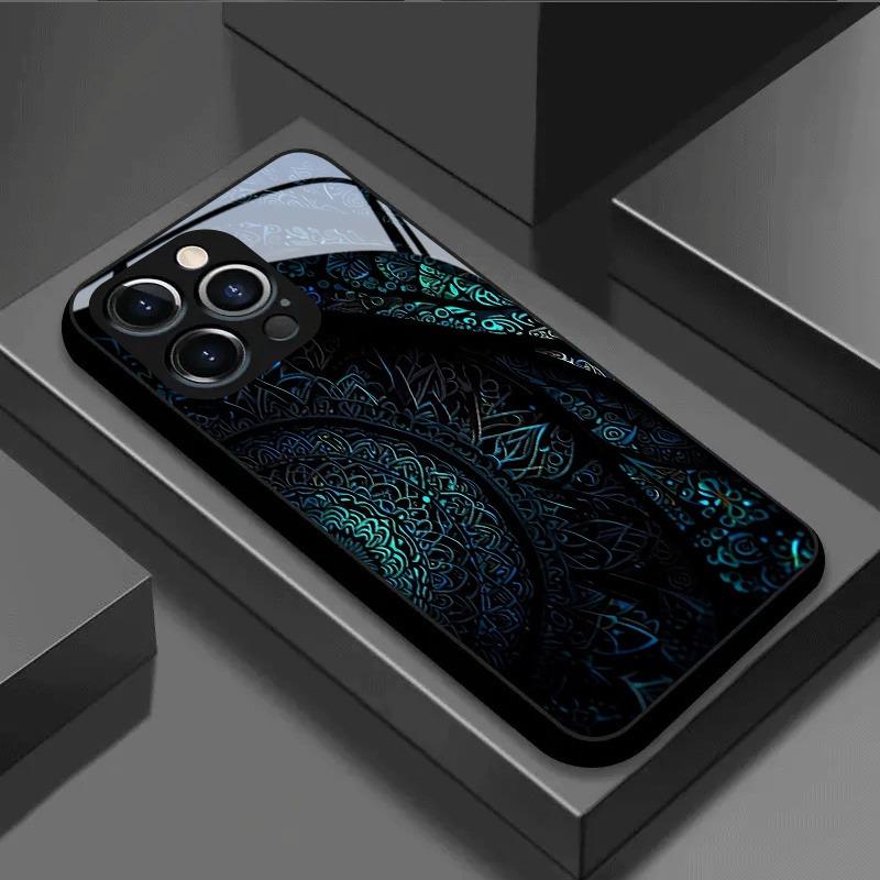 Brilliant Mandala Pattern Tempered Glass Black Phone Case For Samsung Galaxy S25 S24 S23 Ultra Plus FE Shockproof Cover