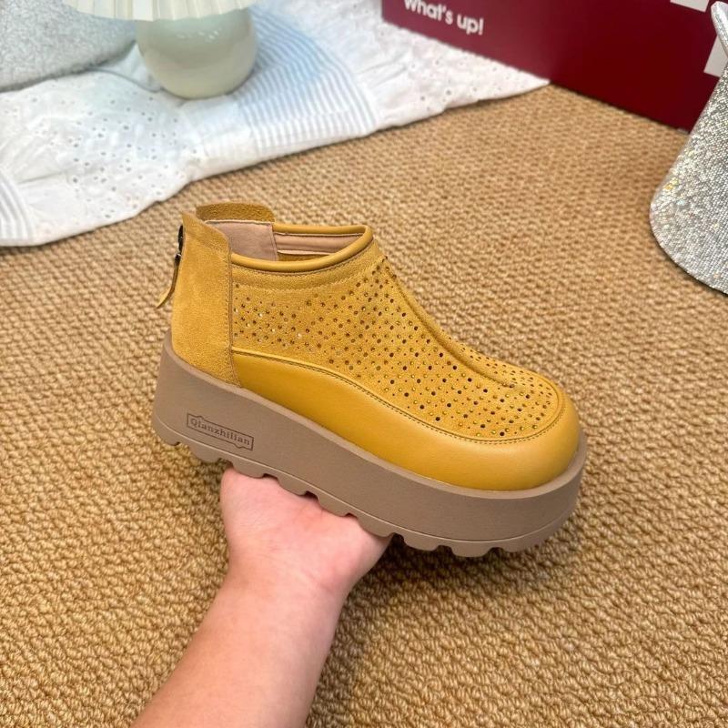 Absatzschuhe Damenmode Runde Spitze Tiefer Ausschnitt Reißverschluss hinten Wasserdichte Plateau-Sohle Weiche Sohlen Rutschfeste Einzelne Schuhe