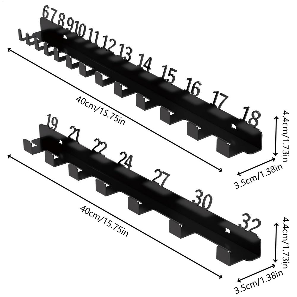 3.Mehrere Zwecke: Die Werkzeughalter-Organizer sind für Stecknüsse in verschiedenen Größen und verschiedene Schraubenschlüsseltypen geeignet, wie z. B. Ringschlüssel, Maulschlüssel, Ratschenschlüssel und gekröpfte Schraubenschlüssel. Sie optimieren den Stauraum und stellen sicher, dass die Werkzeuge bei Reparatur- oder Wartungsarbeiten leicht zu finden und zu entnehmen sind.