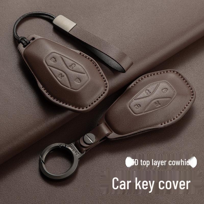 Genuine Leather Key Case for Jihu Alpha S5, Kaola T5, BAIC New Energy ARCFOX Cars