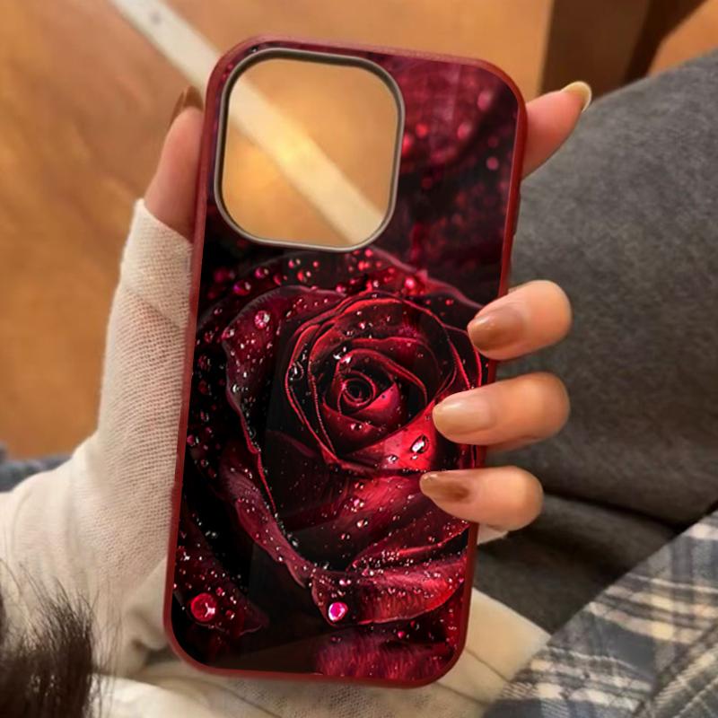 Elegante Rote Rose Regentropfen Muster Weiche Handyhülle für iPhone 17 16 Pro Max 16E 15 14 13 12 11 XS XR 7 8 Plus 1 Air Mattes Cover