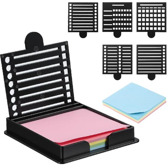 Sticky Note Stencil with 5 Types Stencils 3x3 Notes Holder Stencil Memo Sticky Note Holder Dispenser with Stencils Reble Notes Holders with Template