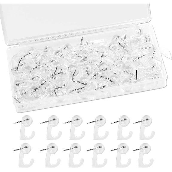 60 Pieces Clear Plastic Thumb Tack Hook, Plastic Heads Pin Tacks Wall Thumb Tacks Hanging Nails Decorative Push P Hooks for Cork Bulletin Board Map
