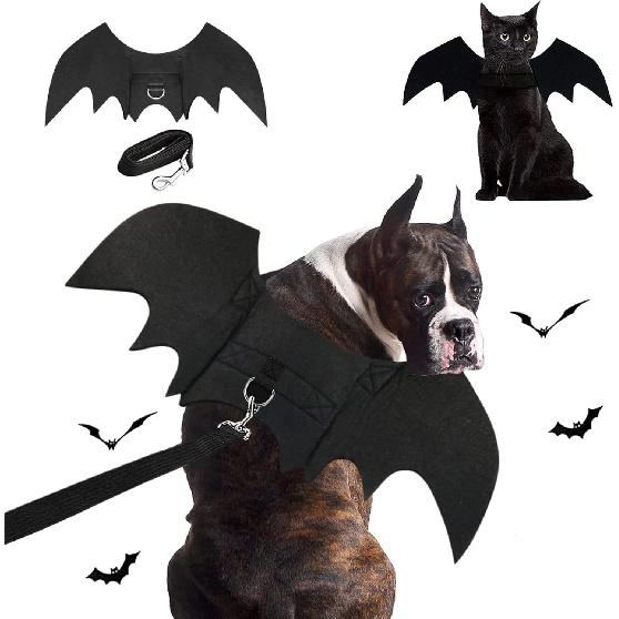 Halloween Dog Bat Costume with Leash Cat Pet Bat Wings Clothes Funny Apparel Outfit Dress Up Accessories for Cosplay Party XL