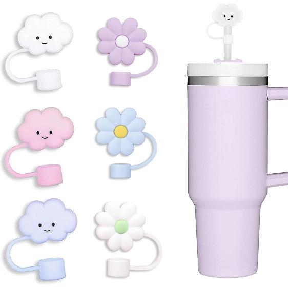 10mm Straw Cover, 6pcs Straw Covers Cap for Stanley Cup 40 oz 30 oz Food Grade Silicone Cute Large Cloud Flower Straw Topper Tips Cover Protector