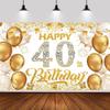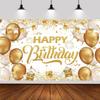 6x3.6ft Happy 80th Birthday Backdrop Banner,White And Gold Birthday Backdrop Sign, Happy Birthday Party Supplies Photo Background for Children Men