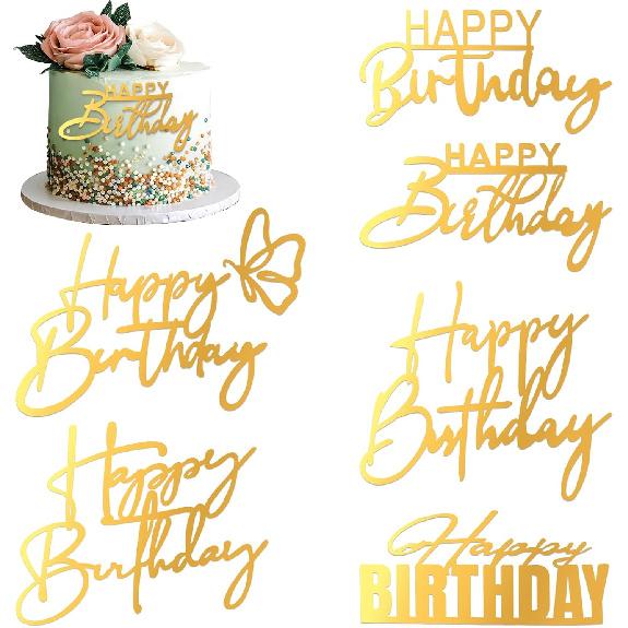 6 Pcs Flat Cake Toppers Gold Happy Birthday Cakes Topper Acrylic Cakes erts Flat Happy Birthday Decoration Sign Side Mirror for DIY Party Decorating