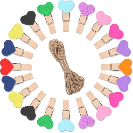 Heart Clothesp, 50 PCS Mini Colorful Clothesp Cute Wooden Clips Small Clothes Pin Photo String Hanging Photo Display with Clips for Home Party