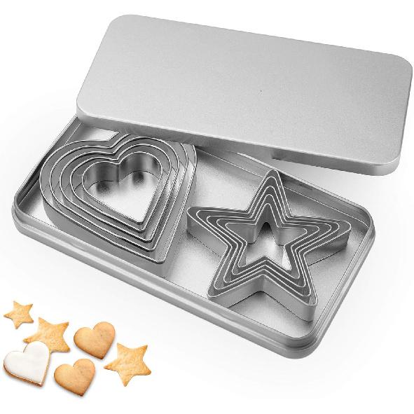 Heart Star Cookie Cutters Set, Valentine’s Day Heart Shaped Biscuit Cutters Stainless Steel Pastry Donuts Cutters with Storage Box