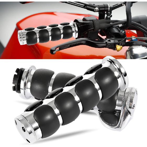 Motorcycle Handle Grips Universal 1'' Chrome Hand Grips with Anti-Slip Rubber Design and Throttle Assist Fit for Harley Yamaha Suzuki Honda Kawasaki