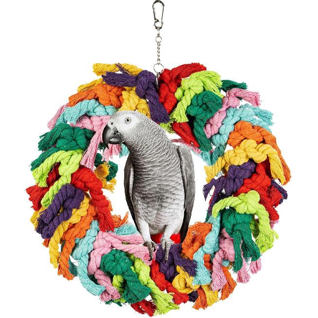 Parrot Swing for Large Birds - Colorful Cotton Rope Hanging Ring Toy for n Grey, Cockatoo, Conure, and Parakeet | Chewing, Exercise, Climbing, and