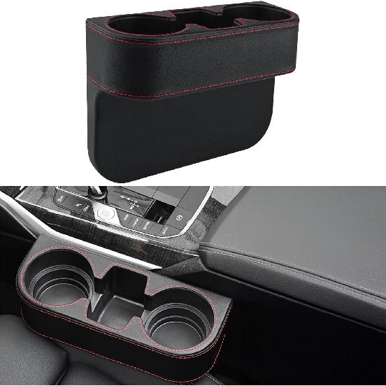 Car Cup Holder Expander & Seat Gap Filler - PU Leather Cover with Stitching, Multifunctional Front Seat Organizer, for Car Truck Van, Holds Large