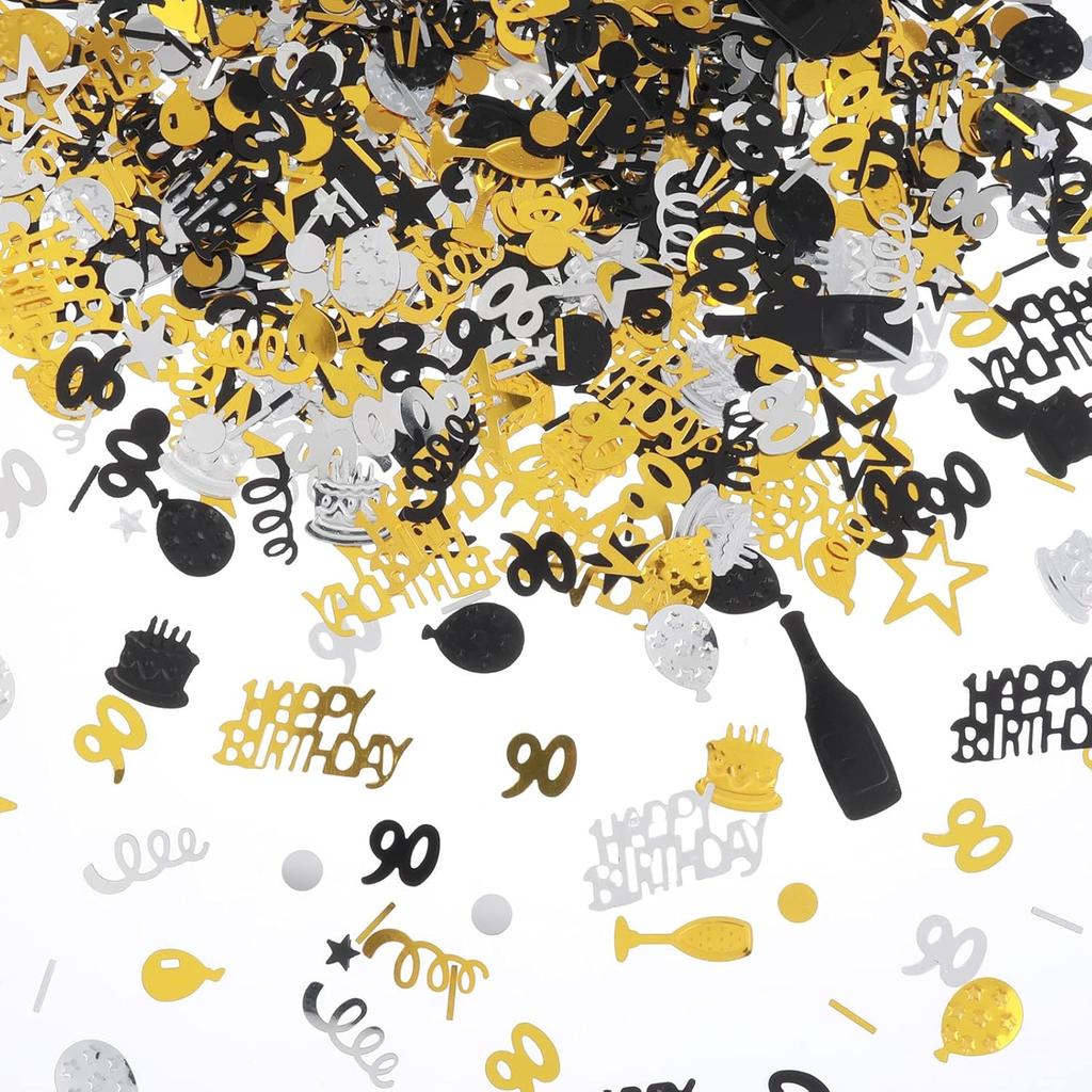 3000 Pieces Birthday Confetti Number 90 Glitter Confetti Birthday Cake Confetti Table Confetti Black Gold and Silver Party Decorations Supplies for