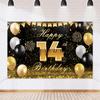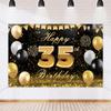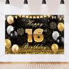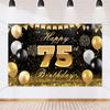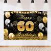 Black Gold Happy Birthday Backdrop Banner Glitter Black Gold Theme Photography Photo Prop Background Decor for Men Women Boys Girls Celebration