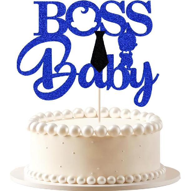 Boss Boy Cake Topper,Blue Glitter Boy 1st Birthday,Baby Shower-Gender Reveal Cake Decorations