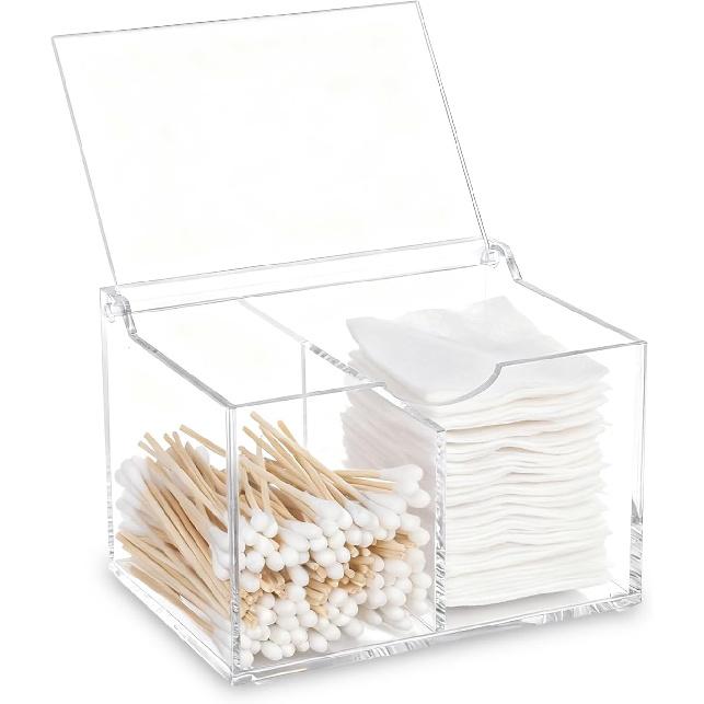 Clear Acrylic Cotton Swab Ball Holder Qtip Organizer with Lid 2-Grid Cotton Swab/Pad/Ball Holder Container Home Bathroom Vanity Countertop Decor
