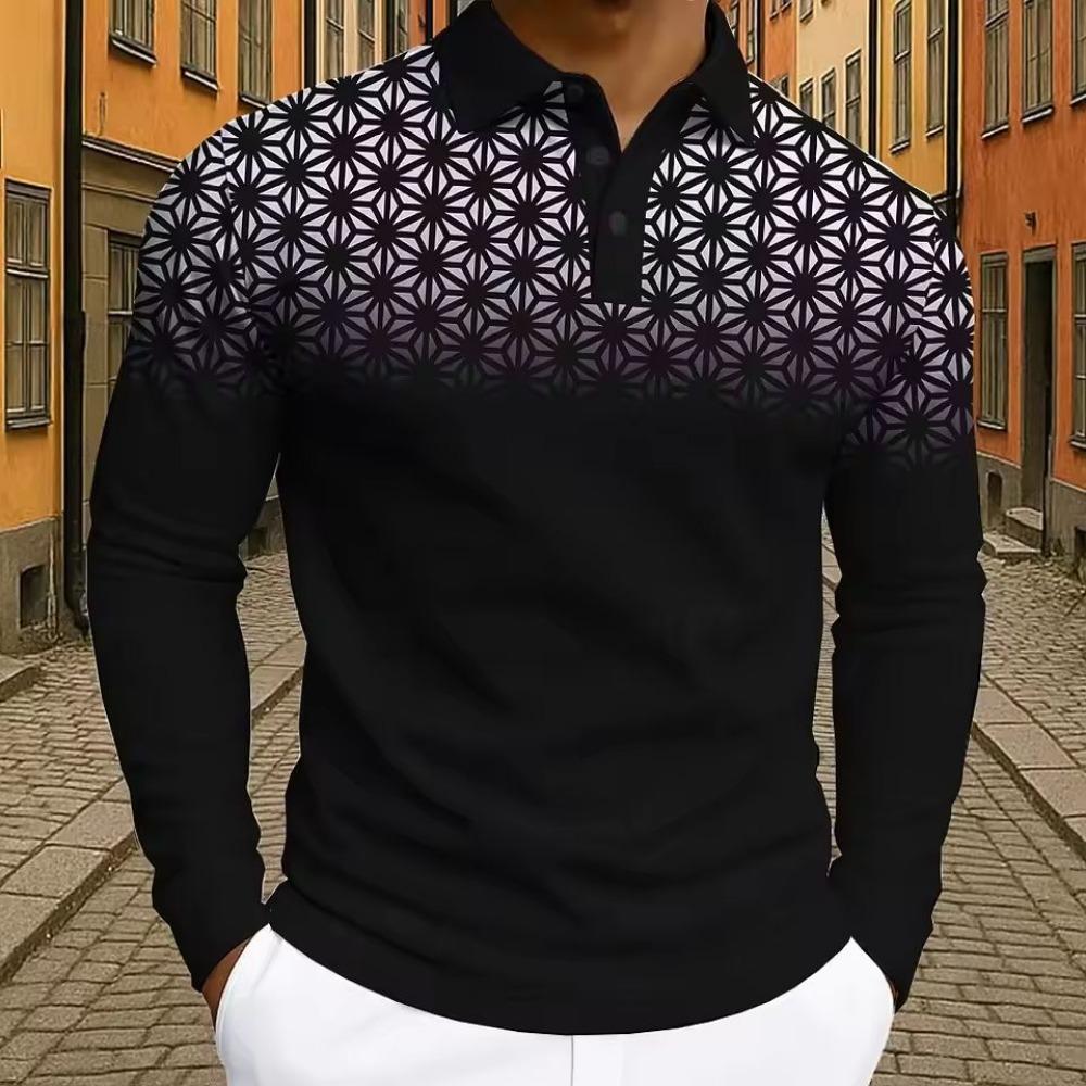 Herren Geometrisches Golf Polo Langarm Poloshirts Athleisure Tägliche Kleidung 3D Drucke Atmungsaktiv Knöpfe Oberteile 2025 Herbst Winter