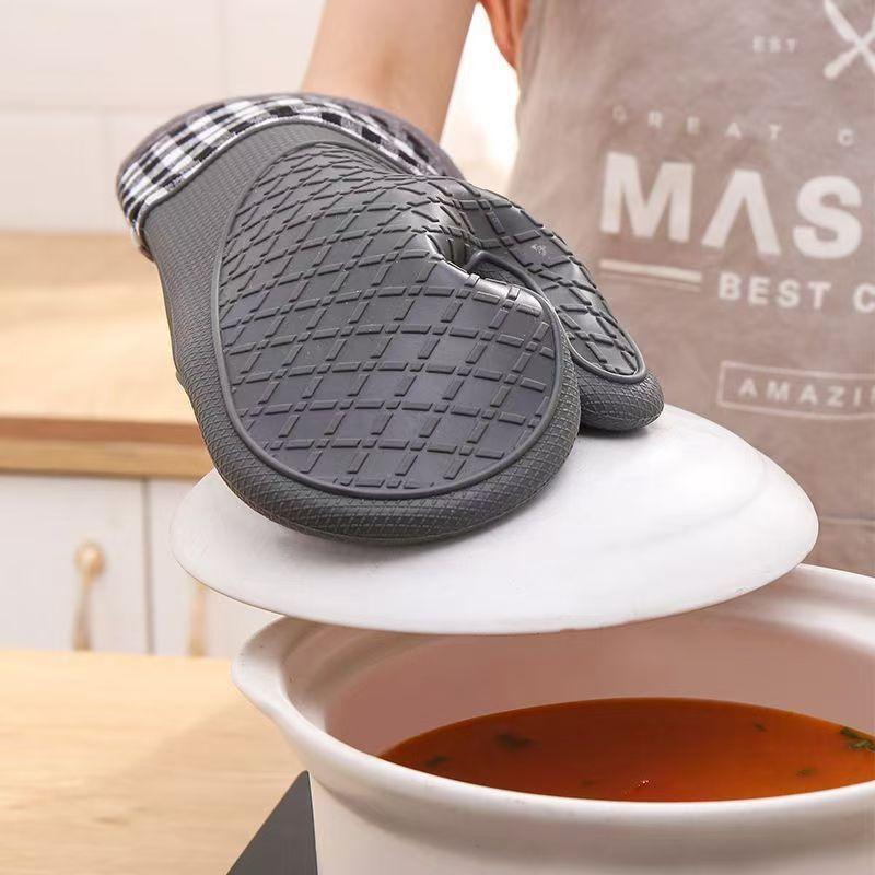 Extended thickened Oven Anti Slip Mitts Heat Resistant Silicone Gloves Kitchen Cooking Baking BBQ Gloves with Wrist Protection
