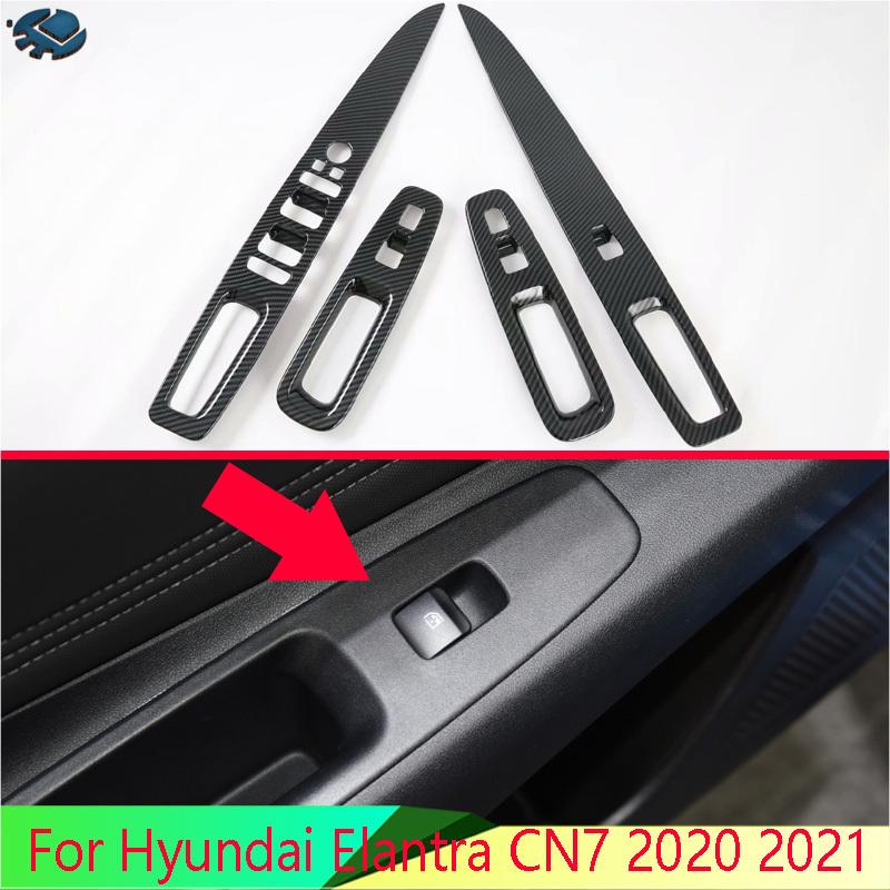 For Hyundai Elantra CN7 Car Accessories Carbon Fiber Style Door Window Armrest Cover Switch Panel Trim Molding Garnish