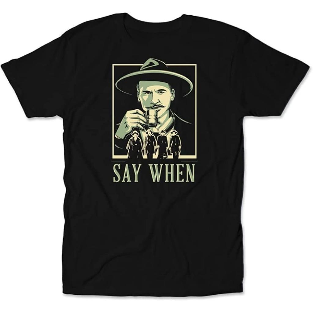 Droomdy Grabstein Doc Holliday Say When Retro Film Humor Schwarz Stilvoll Erwachsenen T-Shirt Herren Damen