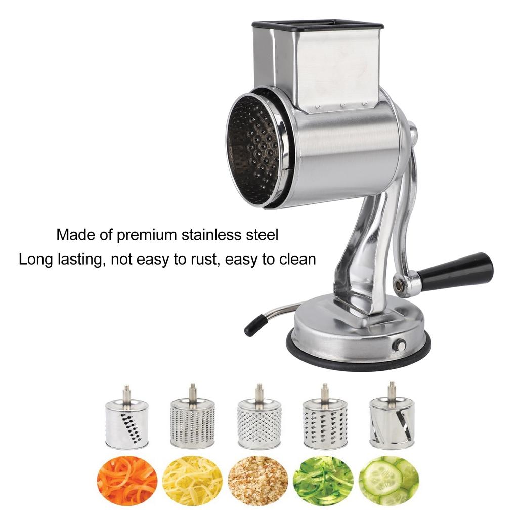 1PC Stainless Steel Manual Cheese Grater and Shredder with 5 Interchangeable Blades and Handle for Vegetable Nut Potato