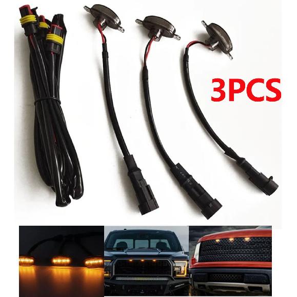3 pcs For Ford F150 Raptor Front Grille Smoked Lens Amber LED Lamp Running Light