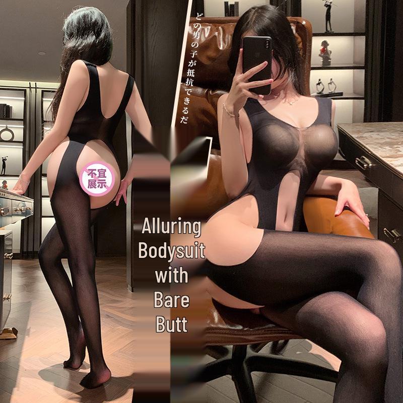 Fei Mu Stil durchsichtiger Nude Po Lingerie Bodysuit - Sexy Neckische Strümpfe für Damen