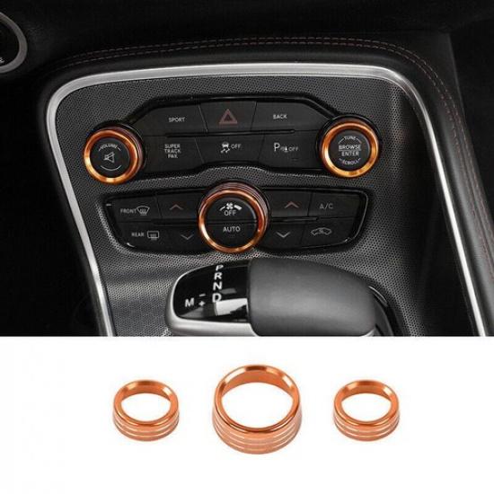 For Dodge Challenger 2015- Aluminum Orange Middle Console AC Knob Cover Trim