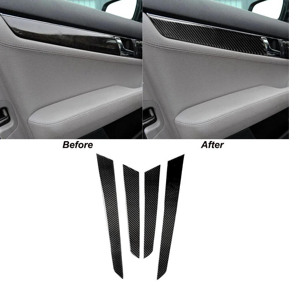 4Pcs Carbon Fiber Door Panel Cover Trim For Mercedes-Benz C Class W204 2007-2013