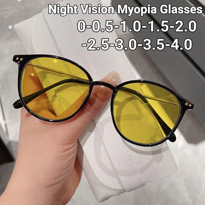 Fashionable Ultralight Night Vision Myopia Glasses Unisex Classic Round Frame Anti-Glare Driving Day & Night Near Sight Eyewear