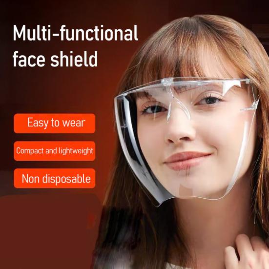 Es bedeckt das Gesicht und die Augen vollständig und blockiert effektiv Küchenfettdämpfe, Tröpfchen beim Zähneputzen, Staub und andere schädliche Partikel, was es vielseitig für den Heim-, Büro- und Industriebereich macht.. Einfach zu demontieren, es kann schnell gereinigt und wiederholt verwendet werden. Seine Haltbarkeit reduziert Abfall im Vergleich zu. Einwegmasken, die eine wirtschaftliche und umweltfreundliche Wahl bieten. Ausgestattet mit Antibeschlag- und kratzfesten Beschichtungen, behält es auch nach langfristiger Nutzung eine klare Sicht, während das robuste Design Beschädigungen widersteht und die Lebensdauer für einen zuverlässigen Langzeitschutz verlängert.