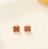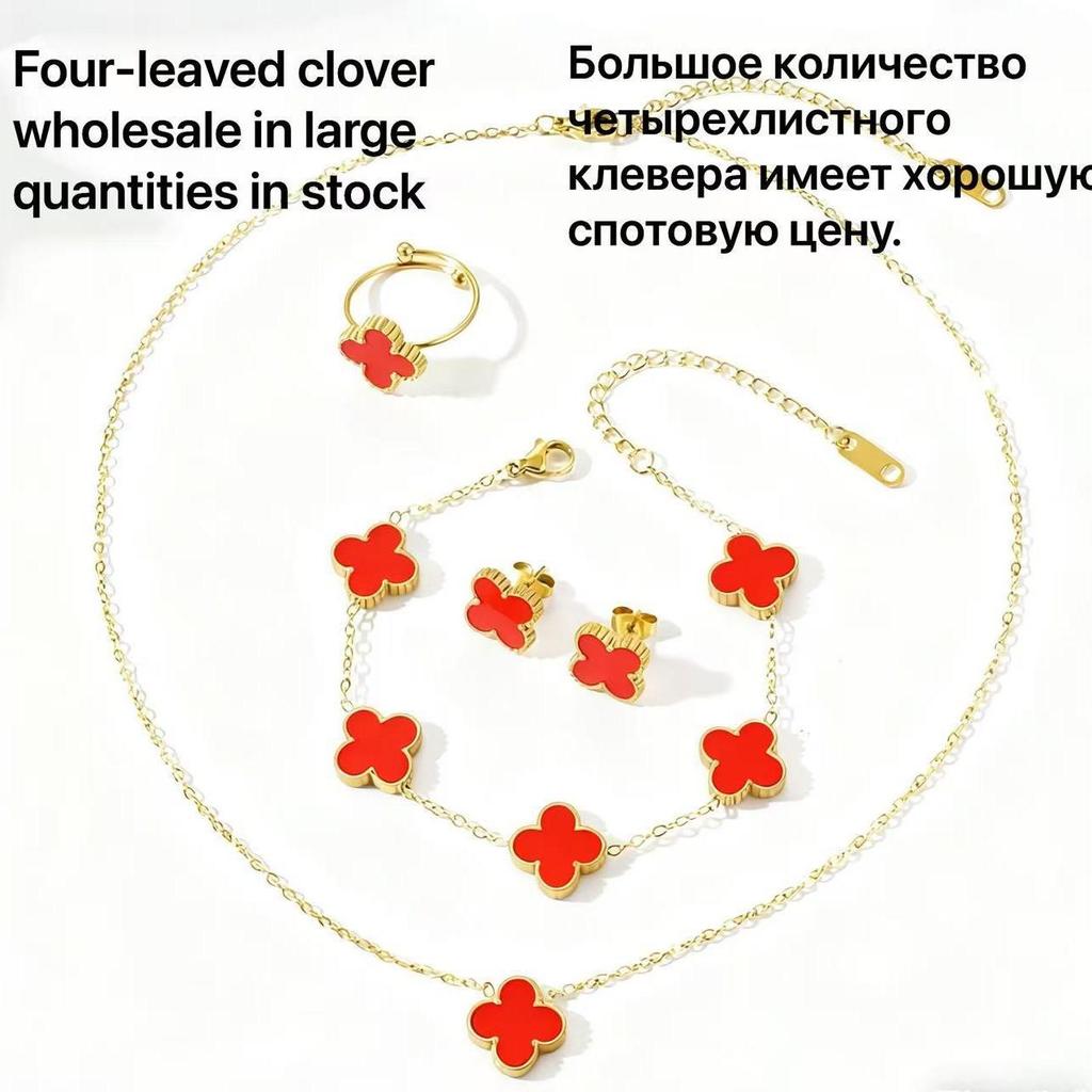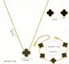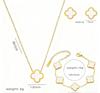 13mm Vierblättriges Kleeblatt Titanstahl Schmuckset: 18K Armband, Halskette, Ohrringe