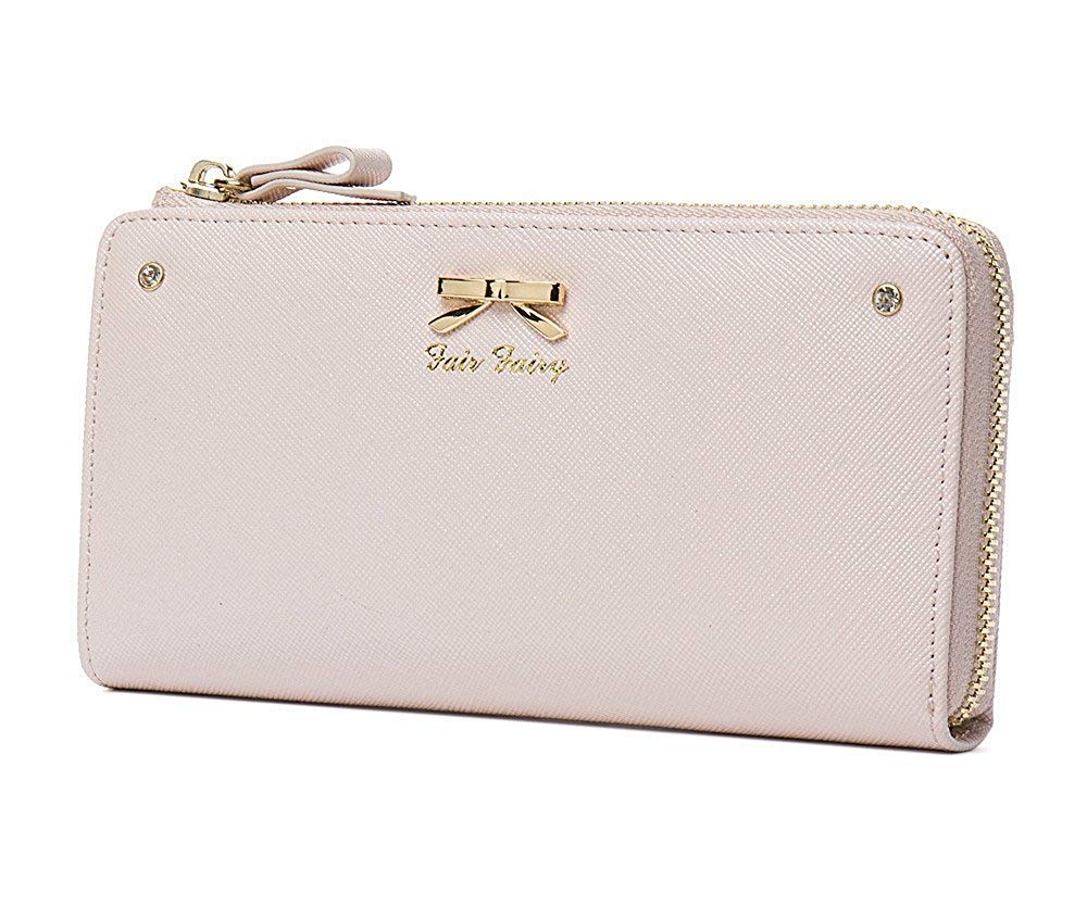 Fair Fairy Long Wallet with Genuine Leather and Simple 160724 Women's L-Zip Ribbon, (Pink Beige, Outlet)