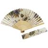 Folding Hand Fan for Women Chinese Japanese Floral Bamboo Hand Fans with Bag Set