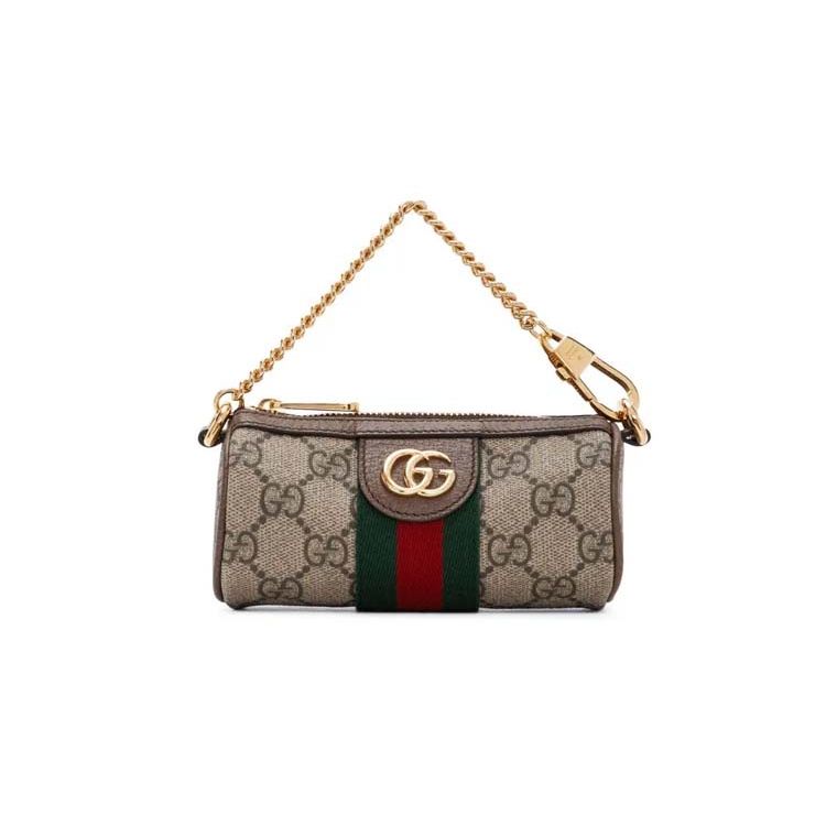 Gucci Ophidia Logo Streifen Web Kette Canvas und Leder Tragetasche Damen Handtaschen Ebenholz 598658-9IK3G-8745