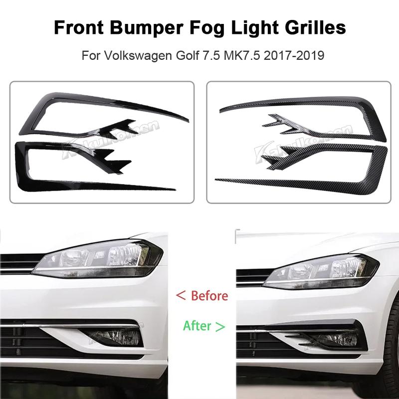 2x Front Bumper Fog Light Grille Frame Cover Trim Wind Knife Razor Style Canards For Volkswagen Golf 7.5 MK7.5 2017 2018 2019