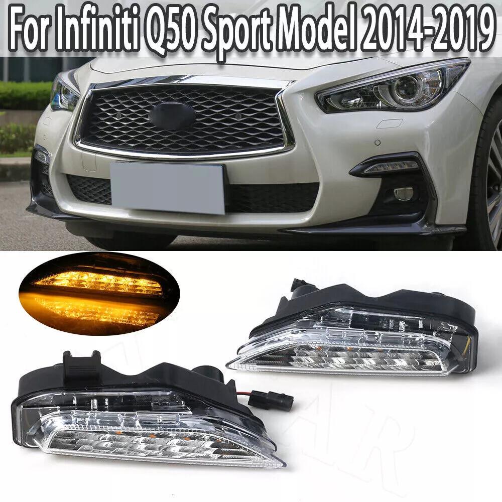 Pair Front Bumper Lower Turn Signal Fog Light For Infiniti Q50 Sport 2014-2020