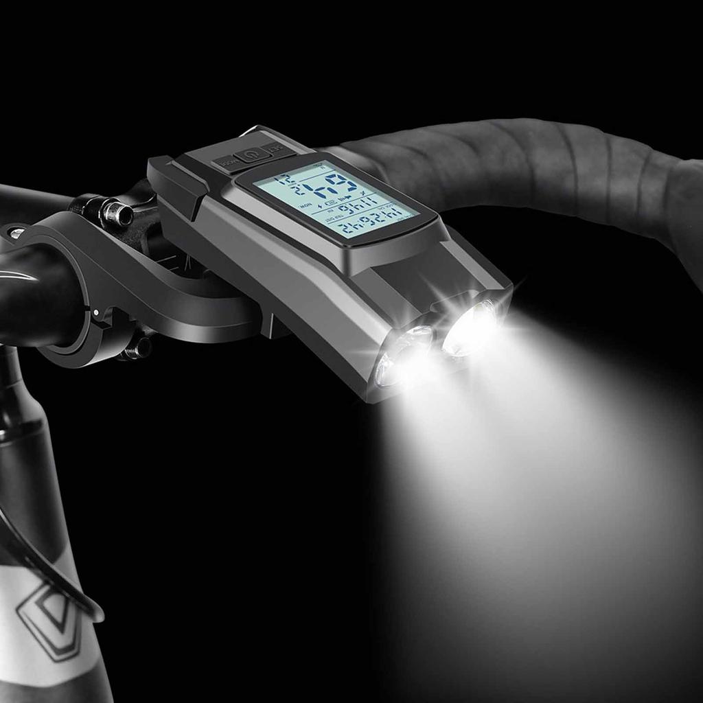 GPS Fahrrad-Stoppuhr & Fahrradlicht, Hochintensitäts-Scheinwerfer mit kabelloser Hupe, Nachtfahr-Ausrüstung für Mountainbikes