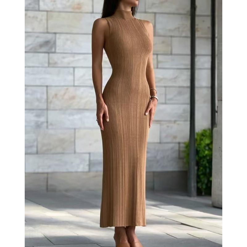 Knitted Turtleneck Sleeveless Tight Skirt Spring and Summer New Mid-length Skirt Elegant French Dress for Women