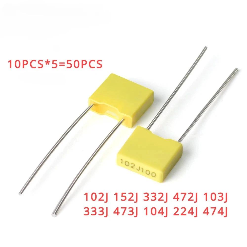 50PCS Safety Capacitor 102J-474J Electronic Capacitor Set 100V 10 Values Capacitors Assortment Kit