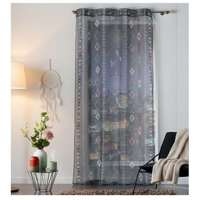 Voilage à oeillets 140 x 260 cm Indila Anthracite menthe