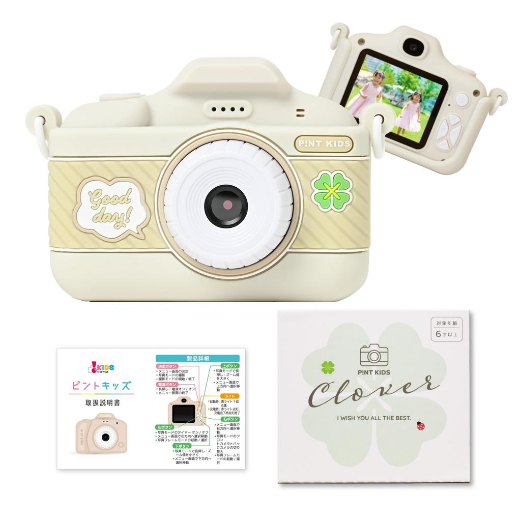 [Original Design Exclusive to Pinto Kids] The new camera comes with two cover designs: "WITH you," which inherits the design from the hit "Pinto Kids WITH" released in 2022, and "Clover," which debuts this time and features a four-leaf clover, a symbol of happiness. These unisex and cute designs are loved by both boys and girls. Choose from stylish colors that adults will love, so you're sure to find one you like. To take a photo, simply point the camera and press the shutter button. Brightness and focus are automatically adjusted to match the surrounding environment. You can also zoom with the button, so you can feel like a photographer. There is no flash, so it's safe for children. The WITH you and Clover covers are exclusive to the new camera and cannot be used with previous Pinto Kids cameras. [Packed with Features for Selfies, Videos, and Frames] It's a toy camera, but it's packed with features. It also has an internal camera, so you can take selfies like you'd take with a smartphone. You can also take videos with audio with the push of a button, just like taking photos. It's packed with fun features, such as a timer for taking group photos and cutely decorating frames, so you'll never get bored.