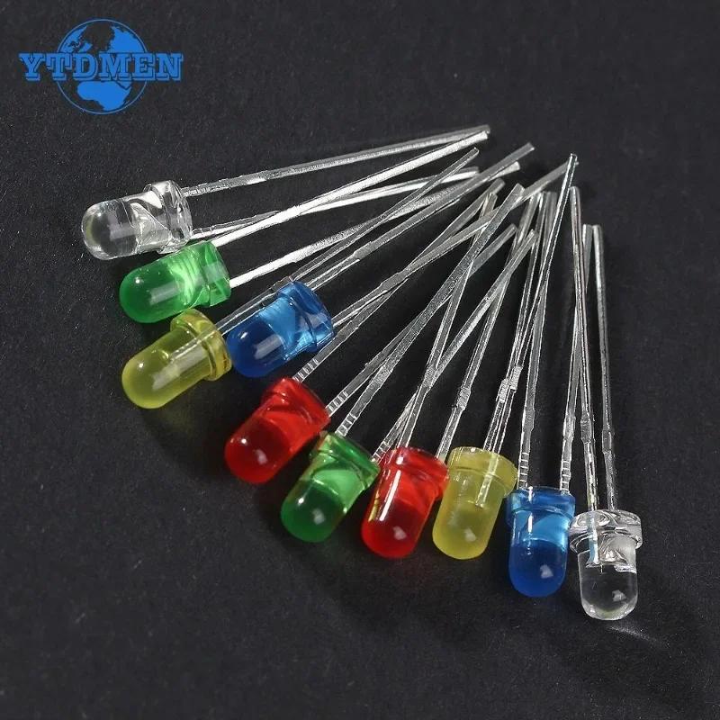 100PCS 3mm LED Diode 5mm Super Bright LED Emitting Diodes Assortment Set 2x5x7mm White Red Green Blue Yellow DIY Electronic Kit