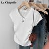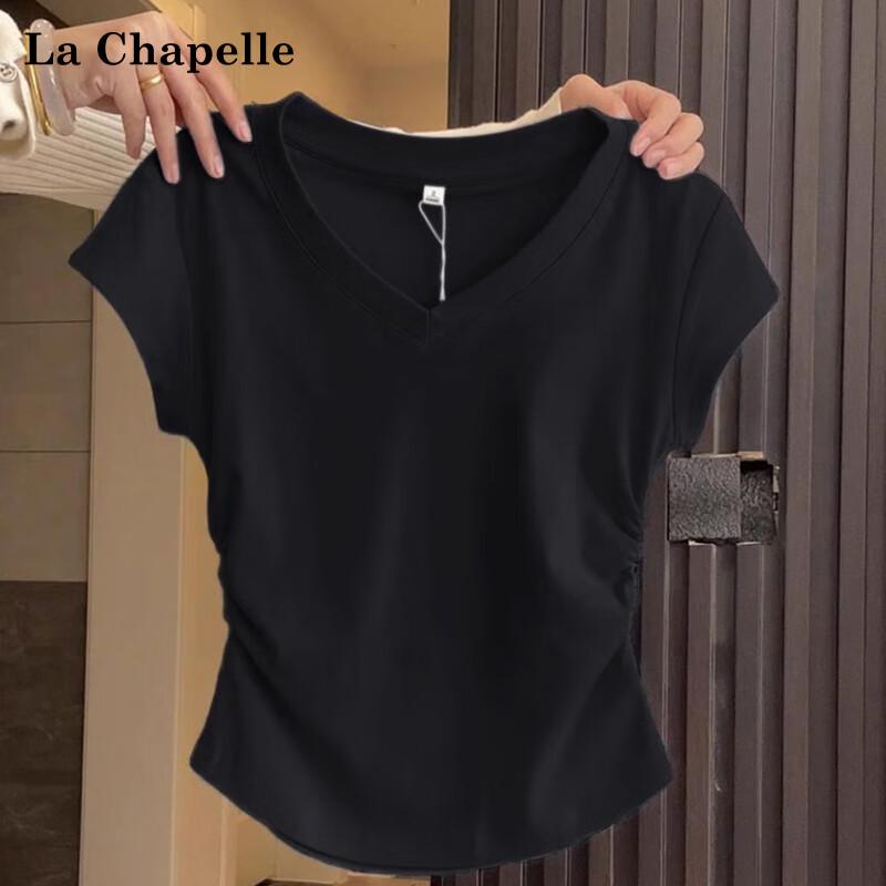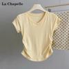 La Chapelle 2025 Damen V-Ausschnitt Falten Slim-Fit Kurzarm T-Shirt