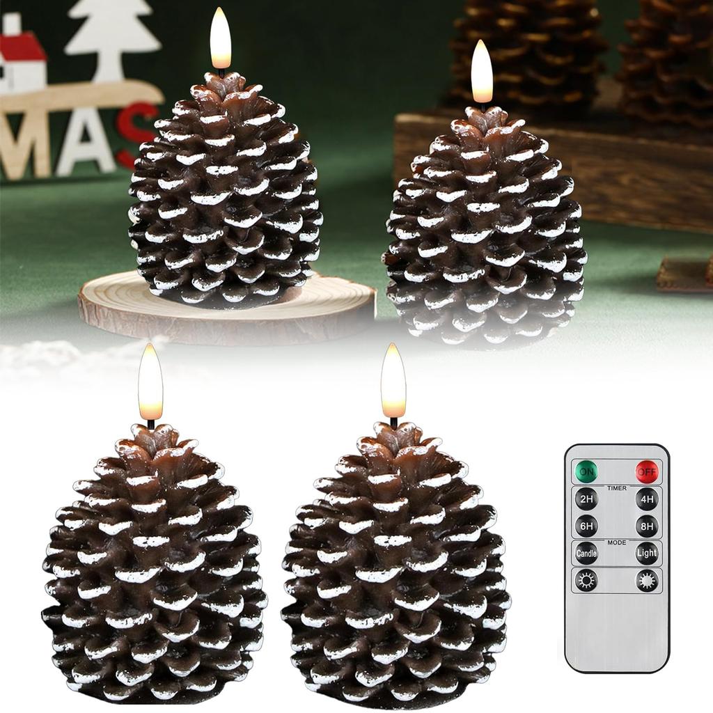Pack of 2 LED Pine Cone Candle Pinecone Shaped Realistic Wax Candles LED Electronic Candle for Holiday Indoor Decoration