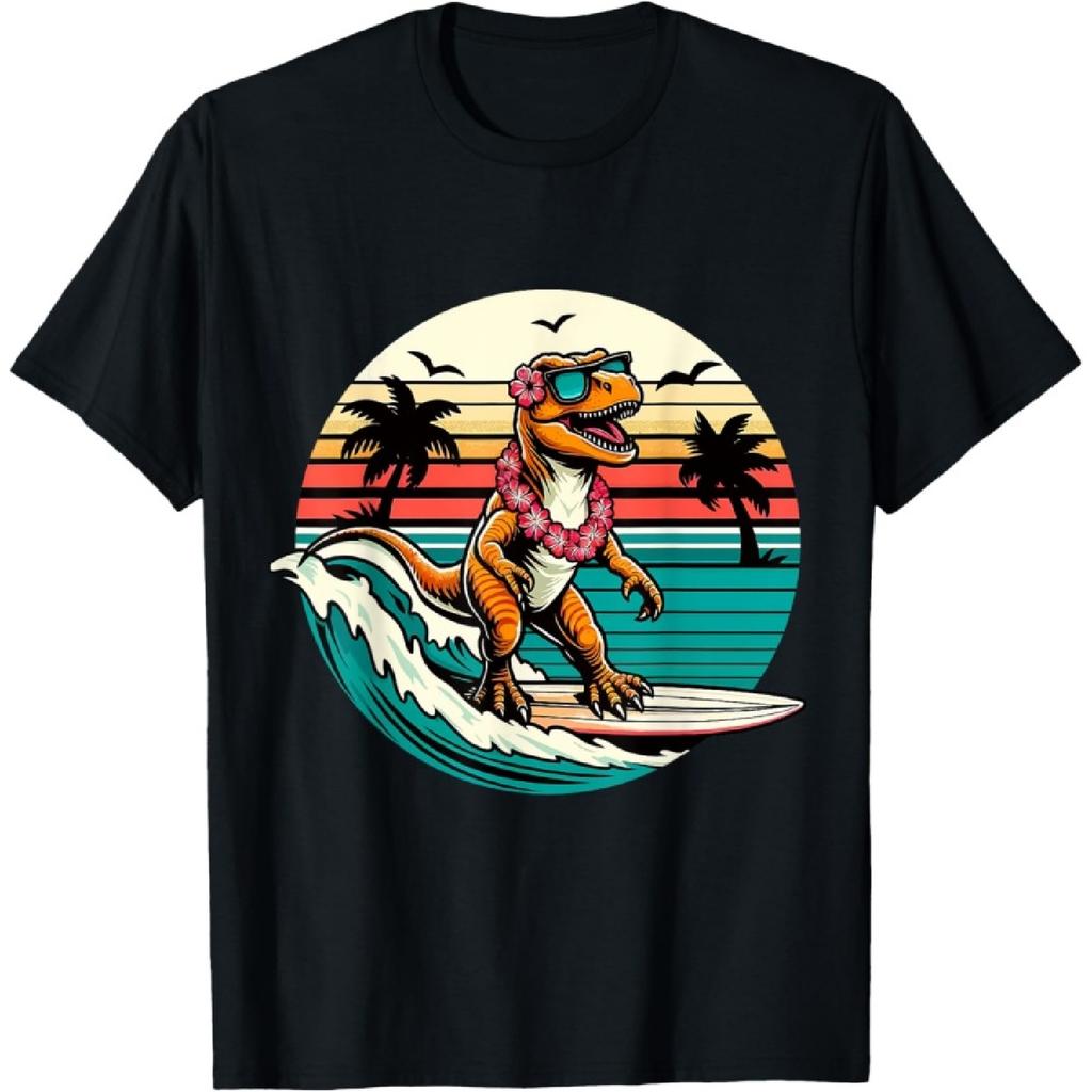 Funny Dinosaur Surfboard Beach Summer Surfing Trex Hawaiian T-Shirt