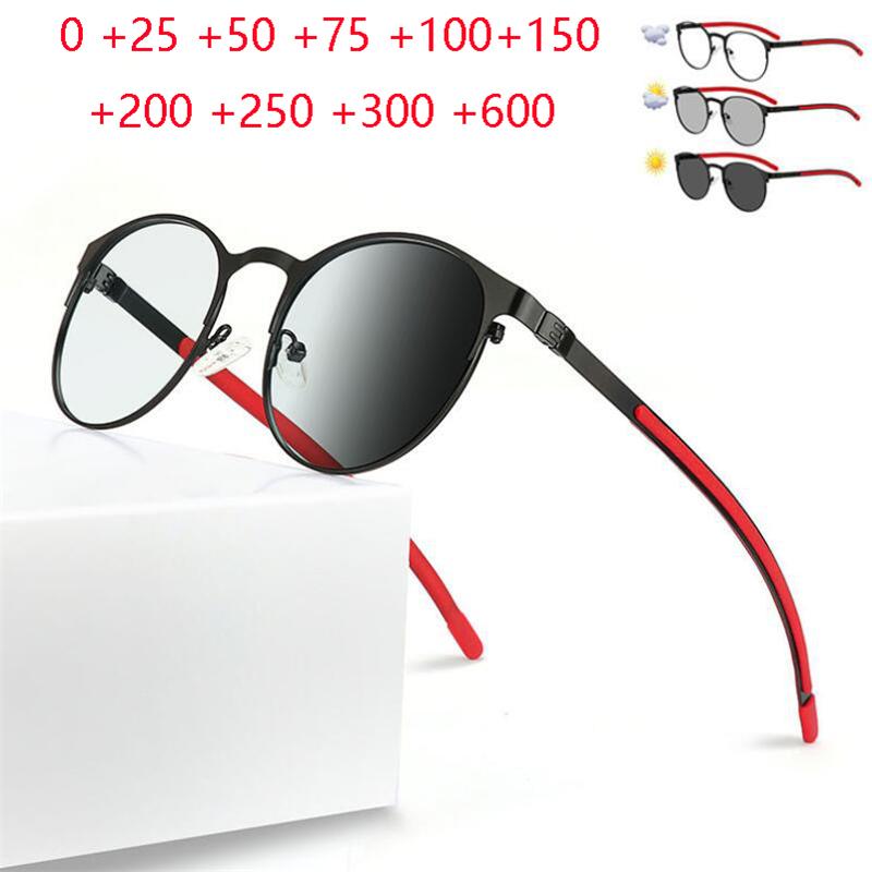 Retro Design Outdoor Sun Discoloration Reading Glasses Women Men Metal Sport Round Farsighted Eyeglasses 0 +25 +50 +75 To +600