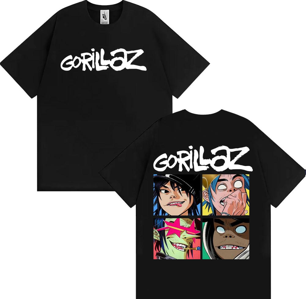 Rock Band Gorillaz Vintage Cartoon Grafik T-Shirts Herren Damen Mode Gothic Übergroßes T-Shirt Lässiges Baumwoll Kurzarm T-Shirt