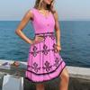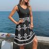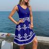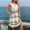 Damen Lässige Ärmellose Sommerkleider Frühling Rundhals Patchwork Boho Floral Cocktailparty Kleid