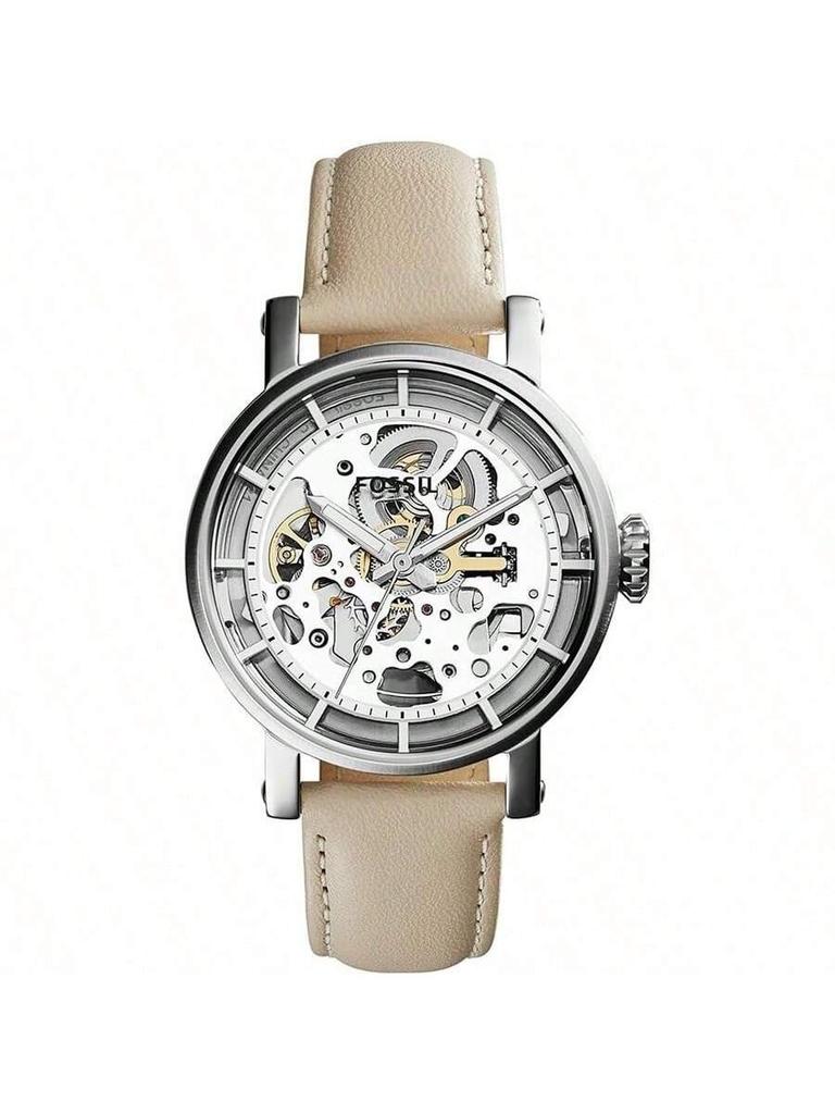 ME3069 Fossil Mechanische Damen-Armbanduhr mit Leder- und Stahlarmband, 3-Zeiger-Anzeige, Edelstahlgehäuse und Kristallglas